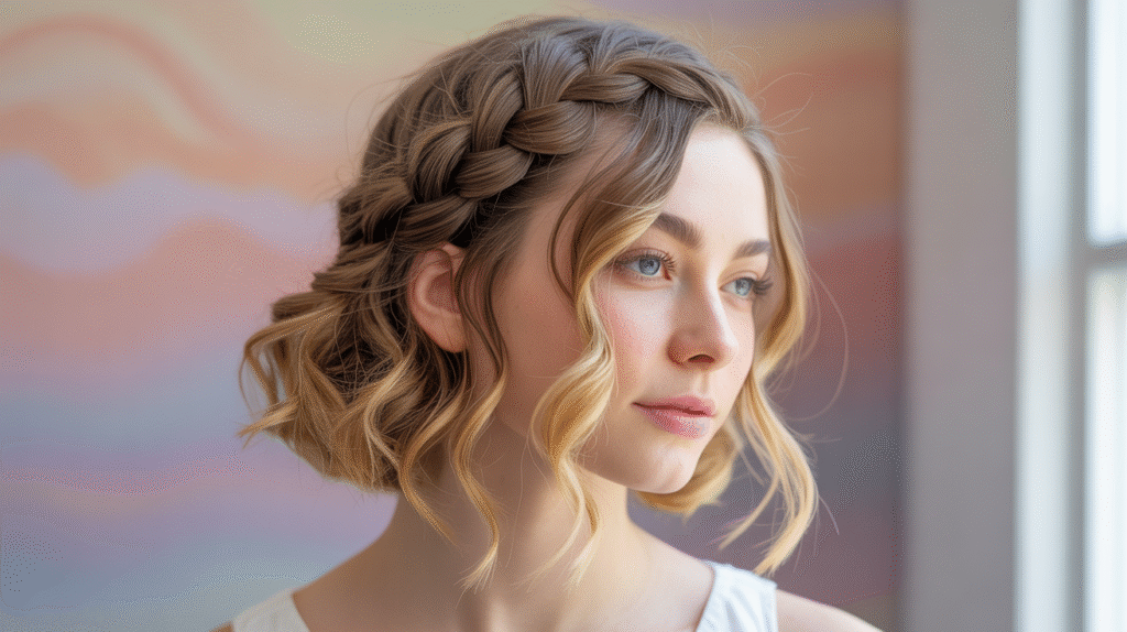 Take a small section of hair from one side, braid loosely, and pin or tuck it behind the ear. Leave the rest of the hair flowing naturally. Lightly apply texturizing spray for hold and airy texture. Optional: add a small hair clip or accessory to enhance the braid.