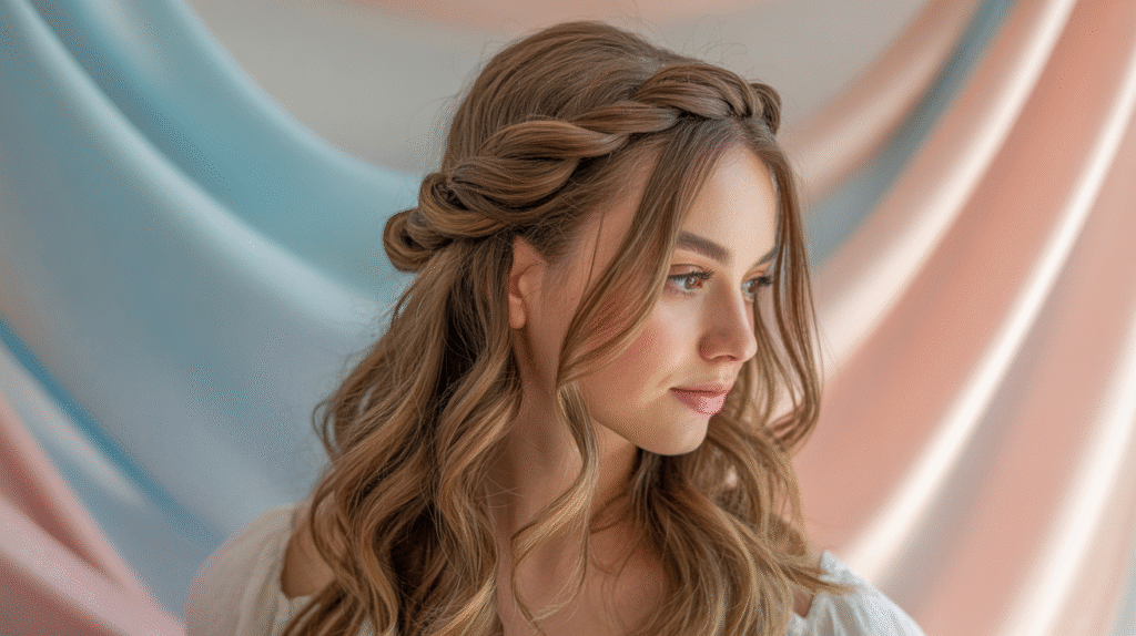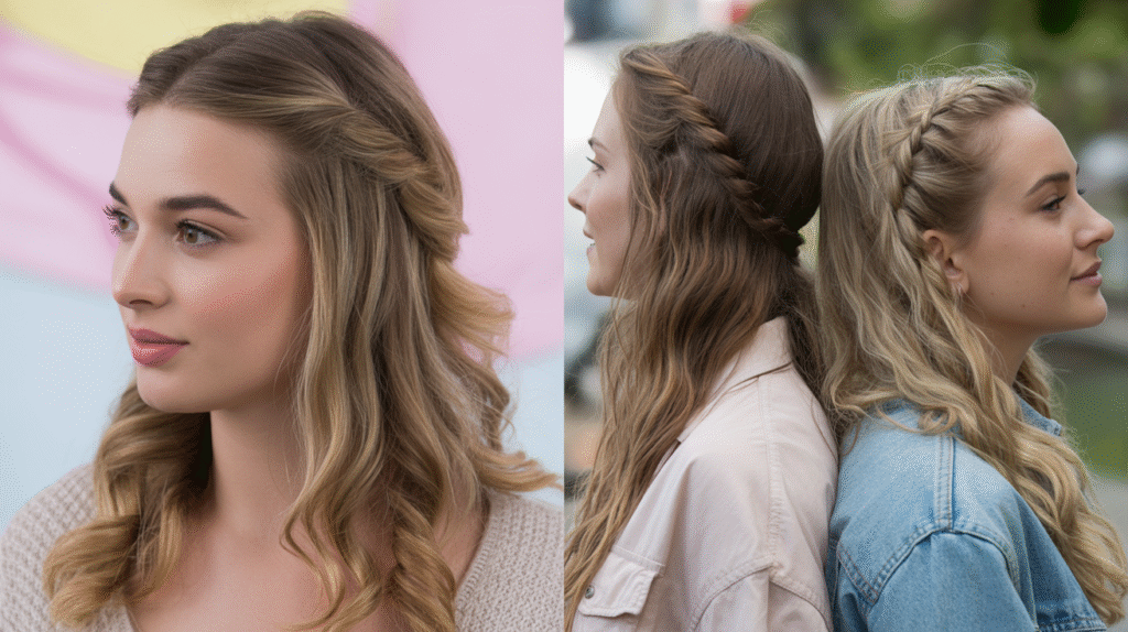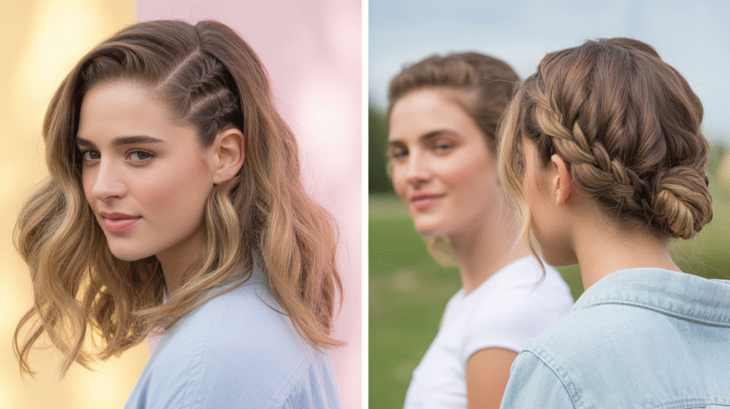 This hairstyle is perfect for casual outings, coffee dates, or relaxed workdays, giving a polished yet effortless vibe. The half-up twisted crown shows how casual hairstyles can combine creativity, practicality, and style without requiring complicated techniques.