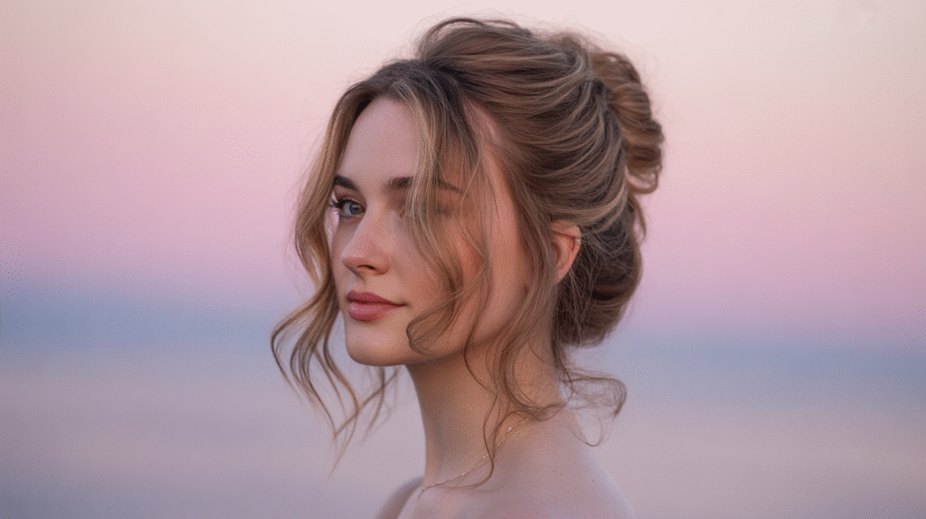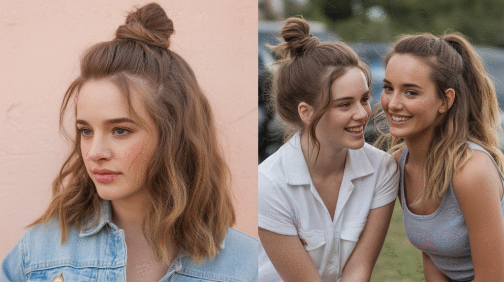 This hairstyle is perfect for casual weekends, brunches, or relaxed workdays, providing a polished yet effortless vibe. The half-up twisted bun demonstrates how casual hairstyles can combine creativity, convenience, and stylish charm for everyday wear.