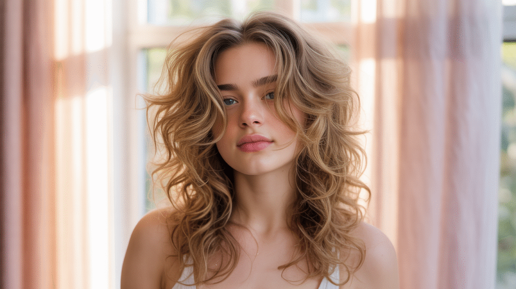 Apply lightweight curl cream to damp hair and scrunch gently. Blow-dry or air-dry for natural waves. Optional: use a curling wand on a few strands for added texture. Finish with a light texturizing spray to maintain airy volume and soft hold.