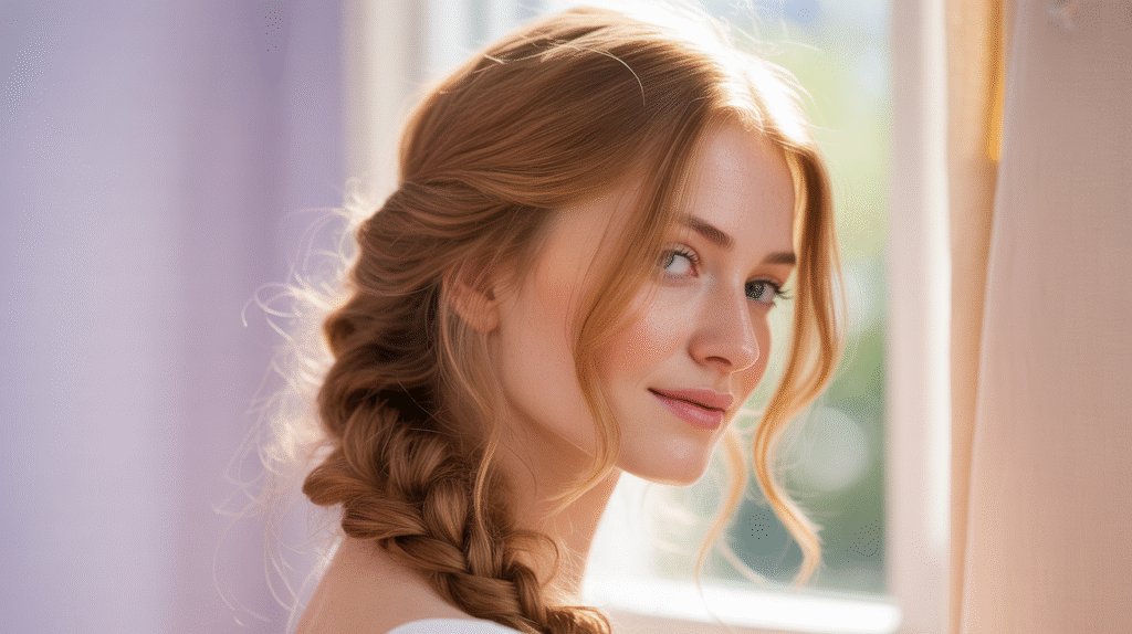 This hairstyle is ideal for casual brunches, outdoor gatherings, or quick errands, proving that casual hairstyles can be both effortless and chic. The braided side sweep combines playful detail with practicality, making it a versatile look for everyday wear.