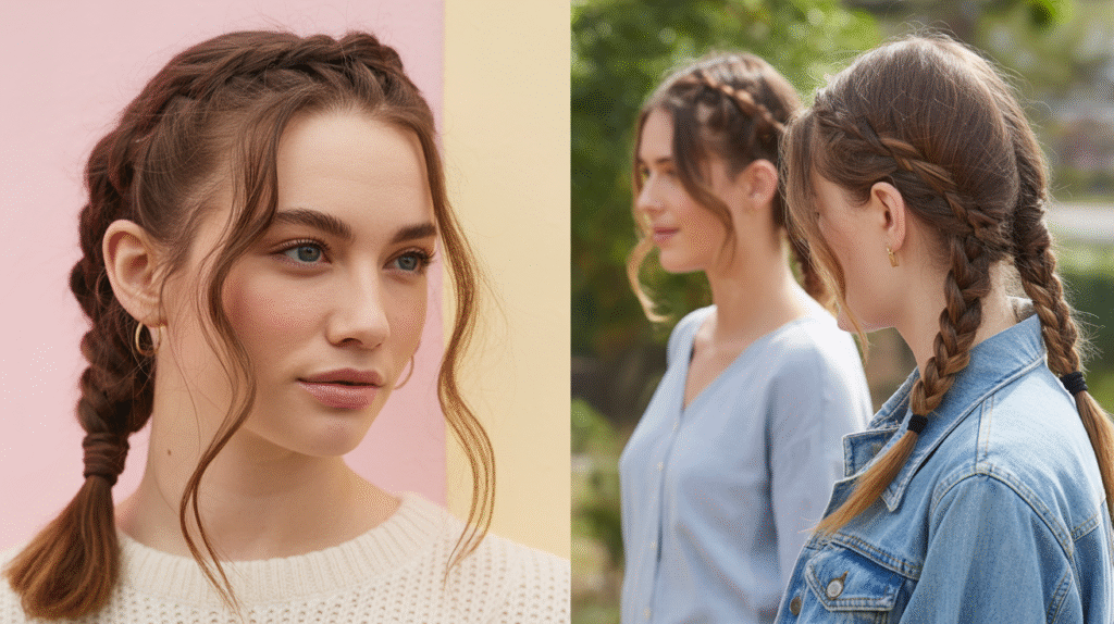 Low loose braids are perfect for casual outings, coffee runs, or weekend errands, creating a playful yet effortless vibe. The style demonstrates how casual hairstyles can be creative and practical, offering a polished yet carefree look that feels natural for everyday life.
