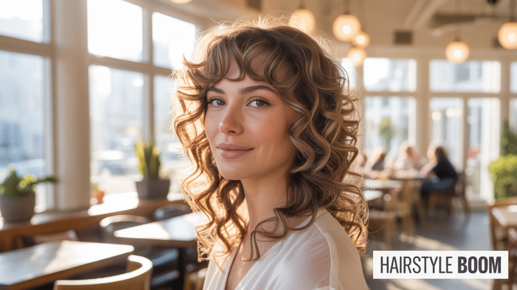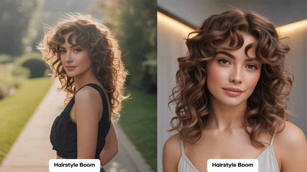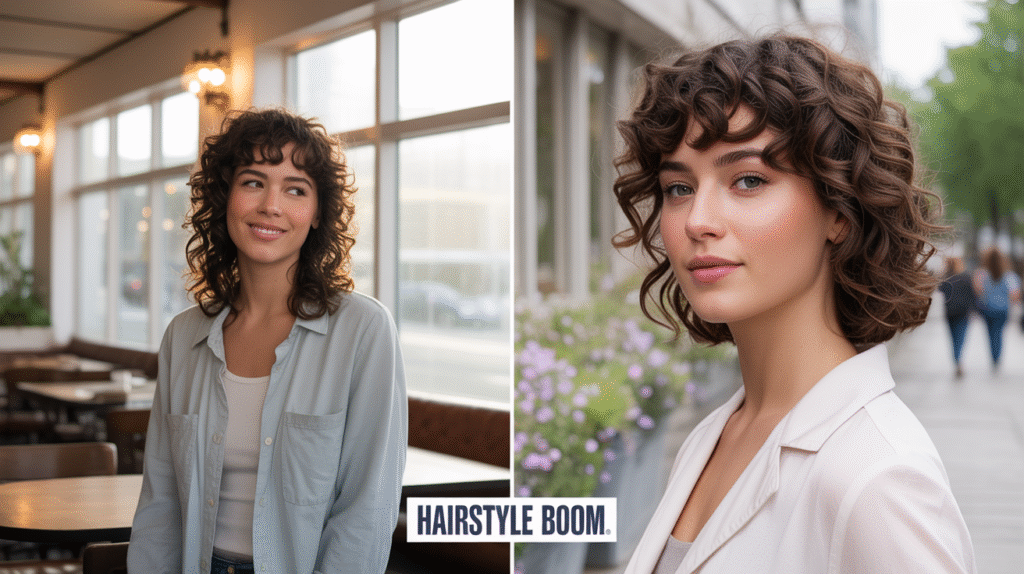 The magic of curly curtain bangs is how they enhance natural features. They highlight cheekbones, open up the eyes, and create a balanced frame that feels romantic and modern at the same time. Whether your curls are loose and wavy or tight and springy, these bangs adapt effortlessly. Plus, they bring a refreshing lift to the front of your hair, making your curls look more lively and intentional even on low-effort days. It’s a 2025 trend that’s charming, expressive, and incredibly wearable.