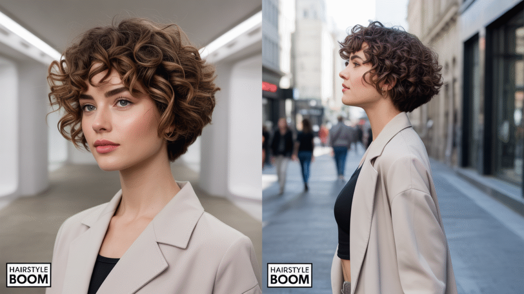 What makes this cut so fire is how beginner-friendly it is. You don’t need to be a styling pro or spend forever doing your hair for it to look good — the cut does most of the work for you. Wake up, fluff a little, and boom… your curls fall into place like you actually tried. It’s perfect for students, working women, busy moms, or literally anyone who wants a low-maintenance curly hairstyle that stays beautiful from the moment you leave the house till the moment you crash at night. Plus, the rounded shape grows out gracefully, meaning fewer salon visits. Big win.