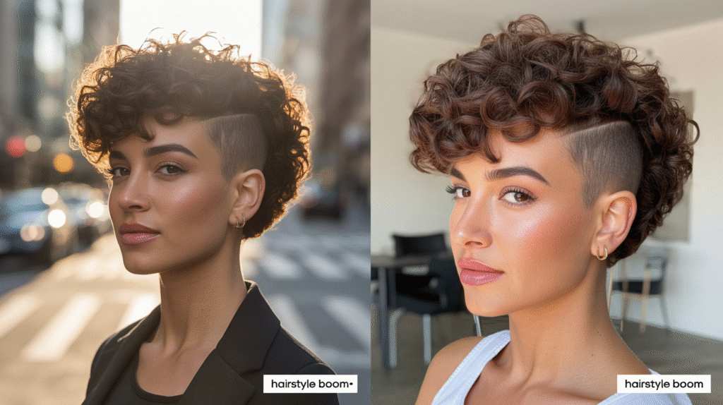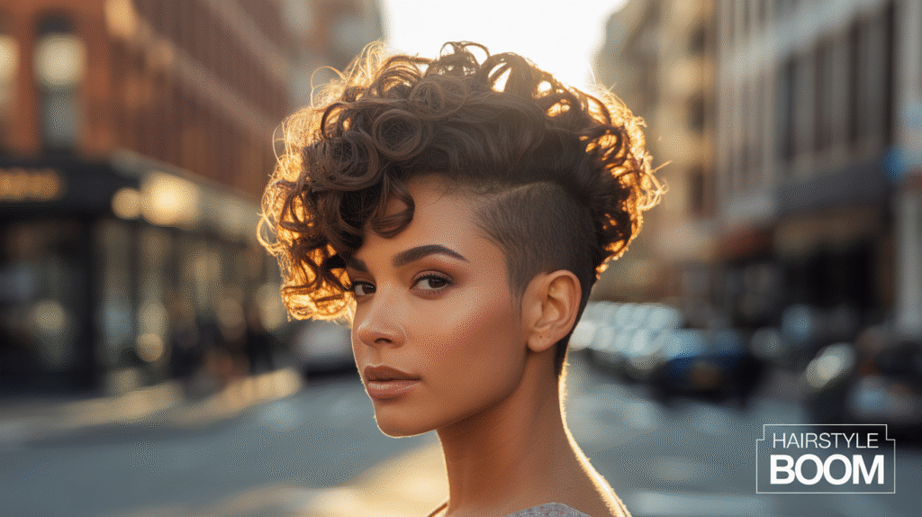 The tapered curly cut is a bold 2025 trend that combines edgy style with effortless curl management. This cut features shorter sides and back while leaving length and volume on top, creating a flattering silhouette that emphasizes your natural curl pattern. It’s perfect for those who want a modern, low-maintenance look that still makes a statement. The tapered shape keeps curls controlled, avoids pyramid shapes, and provides a sharp, polished finish while maintaining natural movement.