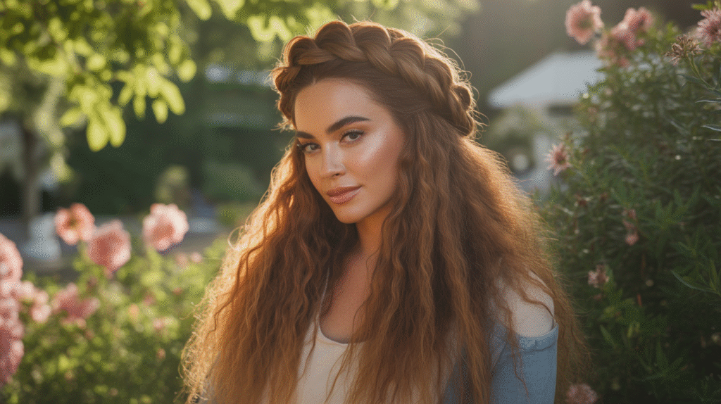 The half-up twisted crown is an elegant yet easy hairstyle that highlights thick hair’s natural volume while keeping it out of your face. Start by sectioning off the top portion of your hair from temple to temple. Take small sections from each side, twist them gently, and secure them at the back with bobby pins. The thickness of your hair gives this style a full, crown-like appearance without needing extra teasing or extensions. Loose strands can frame your face softly for a romantic, effortless vibe. This style works beautifully for casual days, office settings, or even semi-formal events.