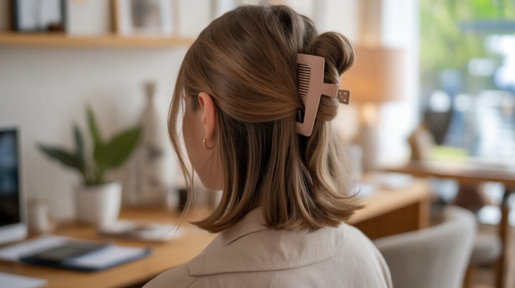 Styling Tip: Use a matte or neutral-toned clip to keep the look modern and minimalistic.