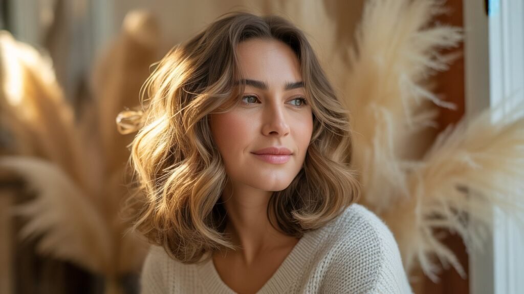 This look adds instant polish while still feeling soft and natural — perfect for work, brunch, or date nights. It’s especially flattering on slightly wavy or textured hair and adds volume without much effort.