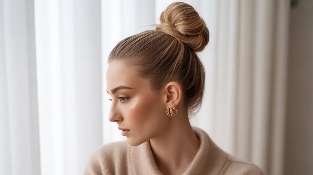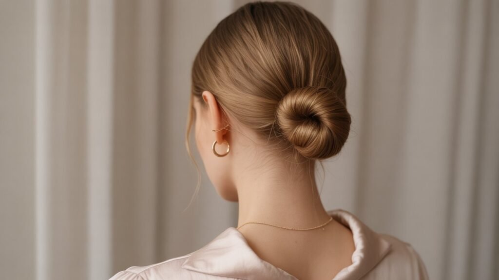 The low knot bun is elegance made effortless. Gather your hair at the nape of your neck, twist it into a simple knot, and secure it with bobby pins or a small elastic. This look takes less than three minutes but gives off a polished, sophisticated vibe that’s perfect for work, dinner, or any semi-formal outing.