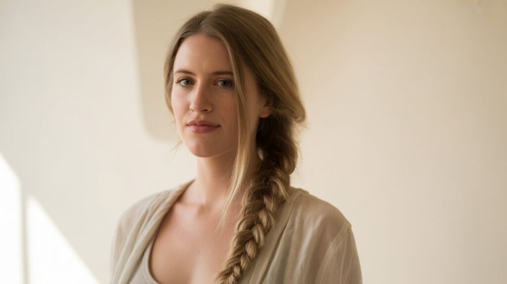 The side braid is a timeless favorite — simple, soft, and effortlessly romantic. Just sweep your hair over one shoulder, divide it into three sections, and braid loosely down to the ends. Secure it with an elastic or wrap a small strand of hair around the tie for a neat finish.