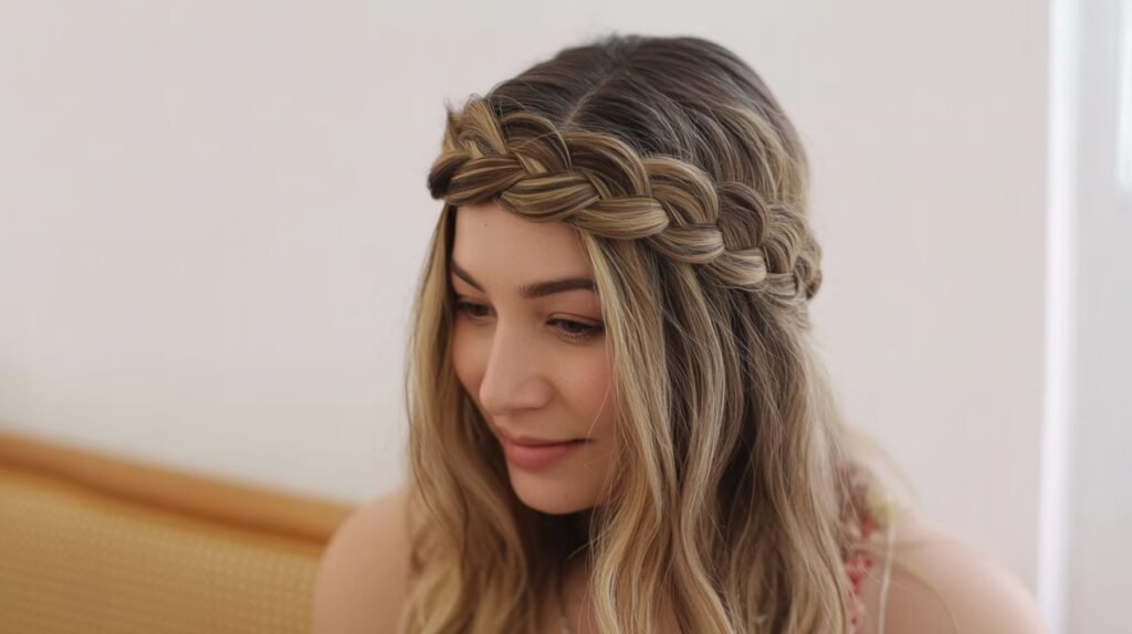 The braided headband adds a touch of charm and creativity to your everyday look — and it’s surprisingly easy to do. Take a small section of hair near your ear, braid it, and then bring it across the top of your head like a headband. Secure it discreetly with a bobby pin behind the opposite ear.