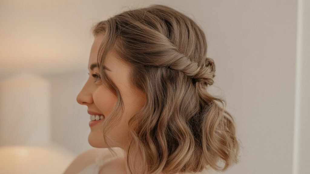 Styling Tip: For extra texture, curl a few strands before twisting to create a romantic, effortless look.