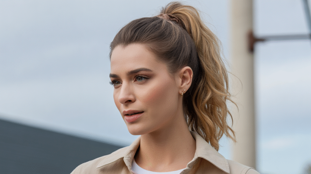 The high ponytail with lift is the ultimate “I woke up tired but still look sharp” hairstyle. It instantly brightens your face, adds height, and gives that confident, clean vibe that just works for everyday life. Because the pony sits high, it gives your hair natural movement and bounce — even if you didn’t style it. It’s energetic without being too extra, making it perfect for busy mornings or days when you want a quick refresh.