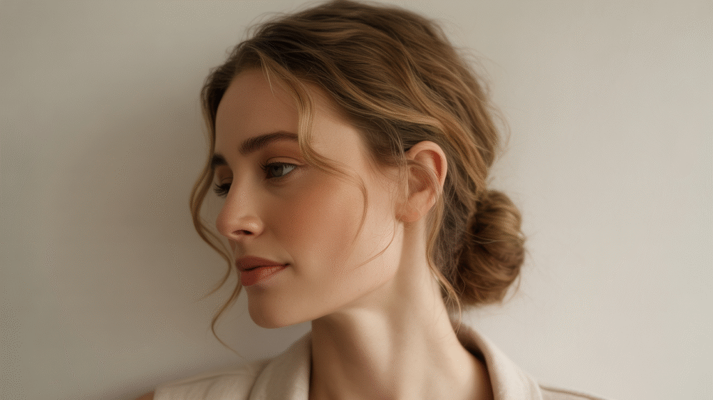 Before forming the bun, gently tug at the crown to create soft volume — it keeps the look from falling flat and adds effortless shape.