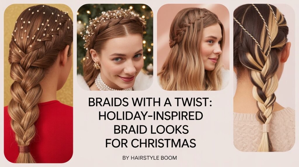 Whether you prefer a classic fishtail, a braided crown, or a loose side braid, there’s a style here for every hair type and length. These holiday-inspired braid looks are perfect for parties, family gatherings, and cozy Christmas photos — all while giving your hair that extra festive flair.