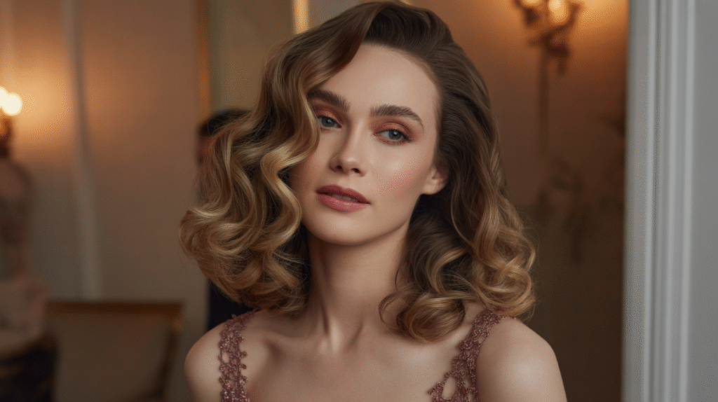The key to this style is volume and movement. Soft waves, combined with a deep side part, give the hair a flattering lift and create a sense of effortless sophistication. You can enhance the look by lightly teasing the roots or adding subtle shine spray for a polished finish. Accessories like sparkling clips or a delicate barrette can also elevate the look, making it ideal for weddings, birthday celebrations, or glamorous evening events.