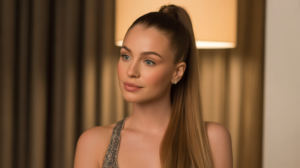 This hairstyle is both glamorous and practical, keeping hair controlled while still making a statement. It’s perfect for nights of dancing or events where you want to look sophisticated yet effortlessly styled. Adding accessories like a hair cuff, ribbon, or sparkling clip can transform the ponytail into a bold, eye-catching look. The sleek finish paired with a high lift ensures your hair remains party-ready throughout the night.