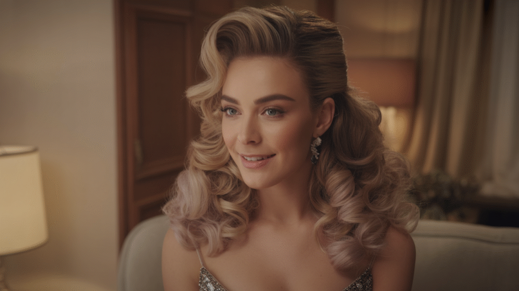 The voluminous curled half-up hairstyle is the perfect blend of elegance and playful charm for parties. By curling the lower half of the hair and pulling the top section into a soft half-up style, this look adds dimension, height, and sophistication. It works beautifully on medium to long hair and instantly makes you look polished and camera-ready.