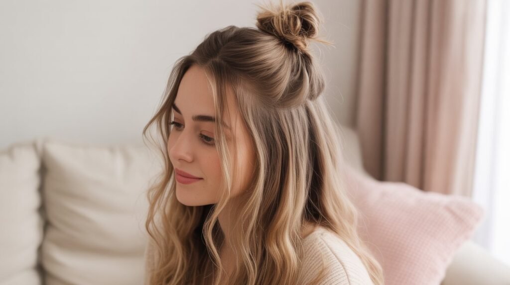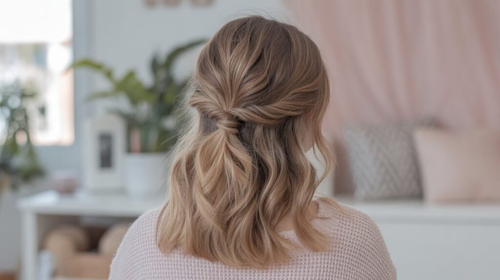 3- The Quick Half-Up Knot – Cute & Effortless