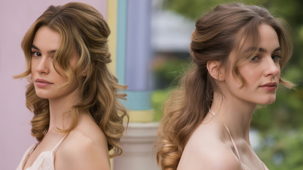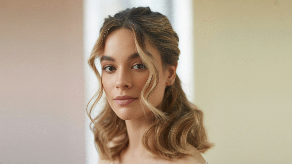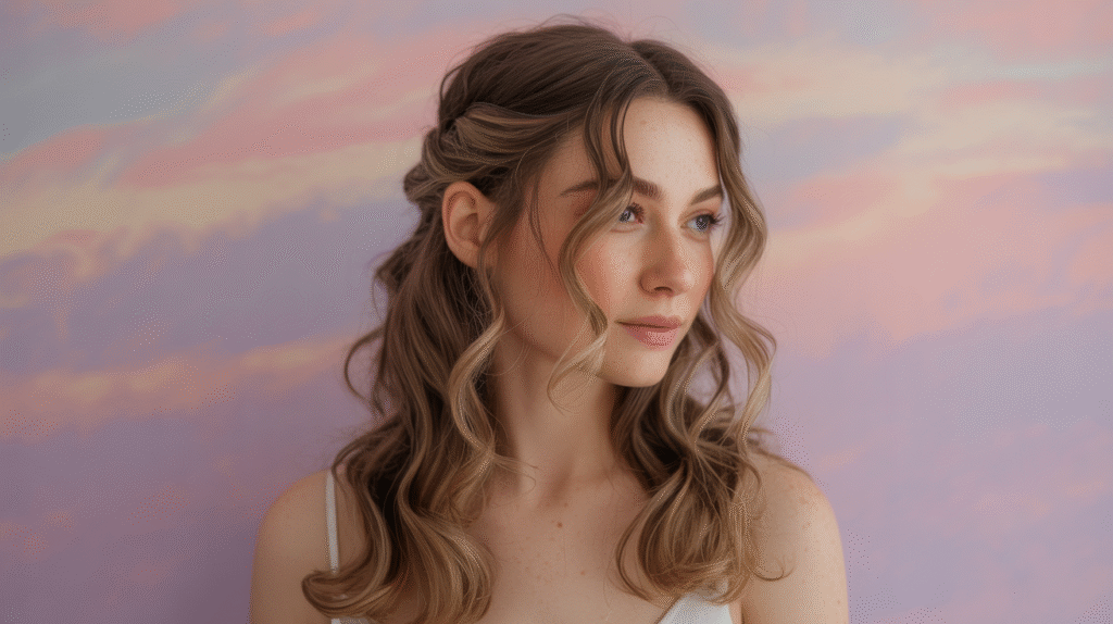 What makes this look trend-forward is its versatility. Whether styled for daytime events or evening occasions, the half-up wavy style aligns perfectly with the shift toward natural textures and low-effort beauty in wavy hair trends 2025. Lightweight styling products help define waves without stiffness, while minimal accessories keep the focus on texture and flow. This hairstyle reflects the growing preference for looks that feel real, touchable, and effortlessly chic rather than overly styled.