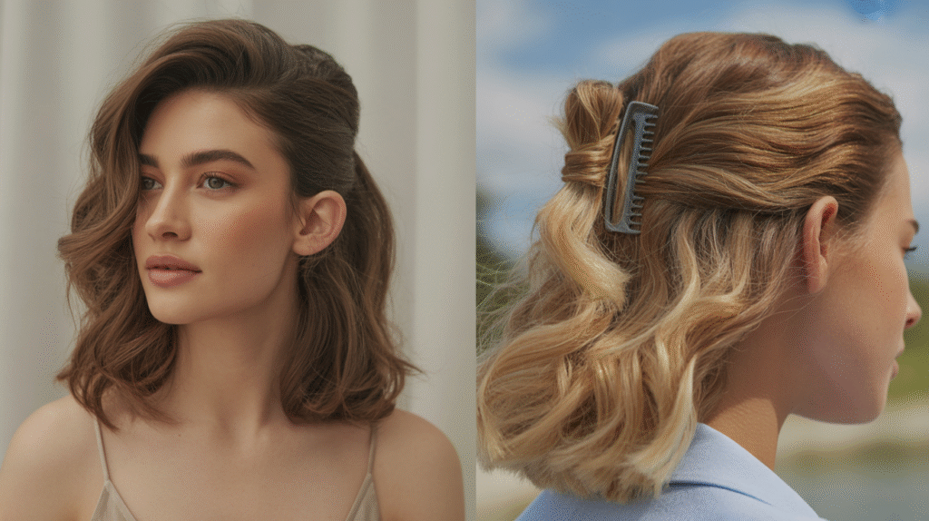 What makes this trend stand out in wavy hair trends 2025 is its balance between casual and refined. The loose waves cascading down the back maintain a natural texture, while the half-up section adds structure and elegance. Whether styled with a claw clip, soft twist, or minimal hair tie, this hairstyle adapts effortlessly from daytime wear to evening events, making it a go-to choice for modern, on-the-go lifestyles.