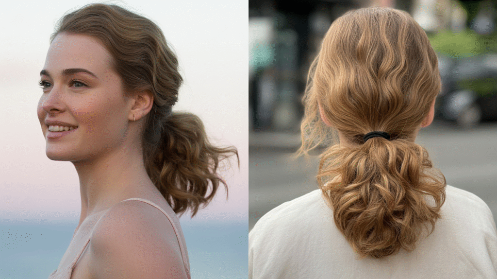 What makes this style so on point for 2025 is its balance between relaxed and polished. The waves keep the ponytail from looking flat, while the added volume at the roots creates a fresh, youthful vibe. Whether styled for daytime errands or casual evening plans, the soft wavy ponytail reflects the shift toward natural texture and easy elegance seen across wavy hair trends 2025.